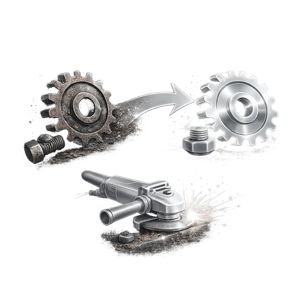Alte Bauteile werden wieder einsatzfähig – durch Entrosten, Entzundern und Neubeschichtung für eine zweite Lebensdauer.